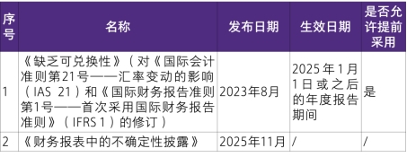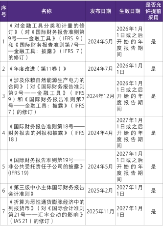 于 2025年12月31日以后生效的准则/修订,由于允许提前采用,也可能会影响本年度财务报告的编制,企业需要做好影响分析和提前应对工作。